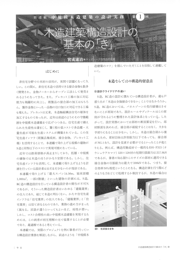 2つ目の記事は「木造建築構造設計の基本の『き』」をテーマに、中規模木造建築を進めるうえで知っておきたいポイントを紹介する連載の第1回です。